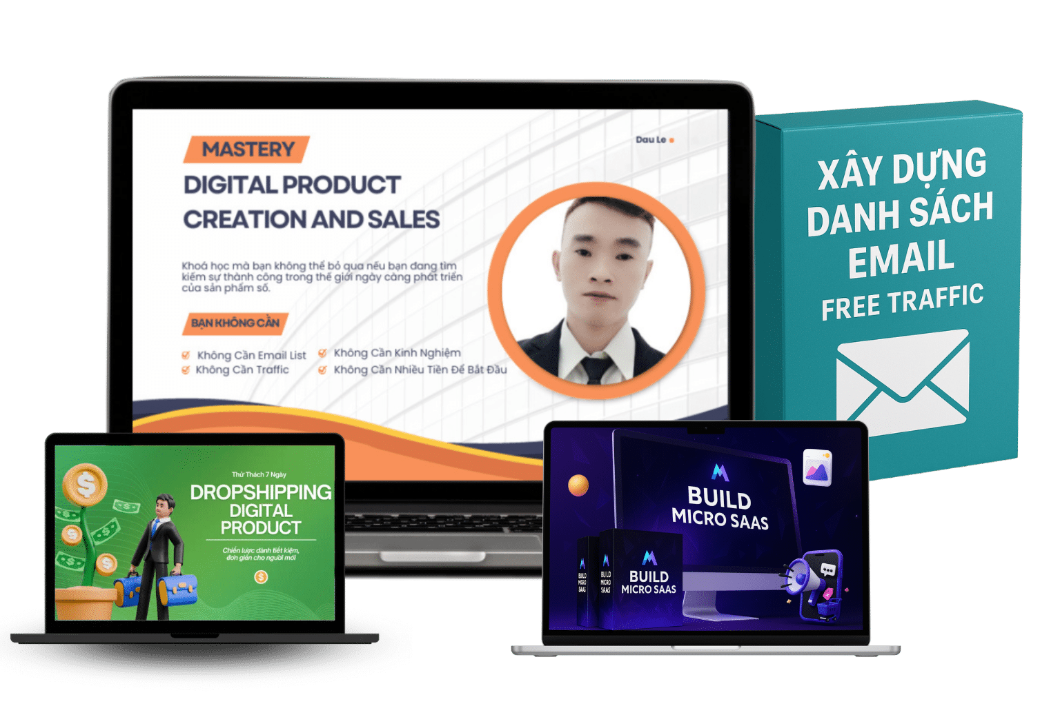 Trong bộ này, bạn sẽ được học từ A-Z: từ việc xây dựng danh sách email miễn phí, thử nghiệm sản phẩm, tạo phần mềm SaaS nhỏ, cho đến cách triển khai một hệ thống bán hàng chuyên nghiệp.
